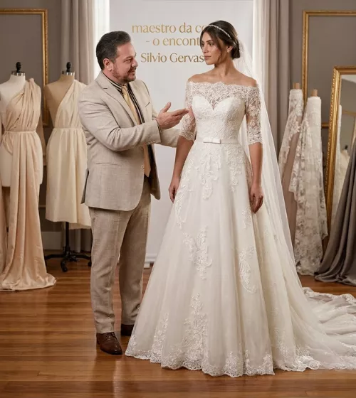 Descubra como se faz um atendimento real a uma cliente — ao vivo! Você vai ver o Professor Silvio atender uma Noiva de verdade, tirar as medidas com precisão e iniciar, na prática, a criação de um vestido de noiva sob medida. Uma verdadeira aula de atendimento de Alta Costura!